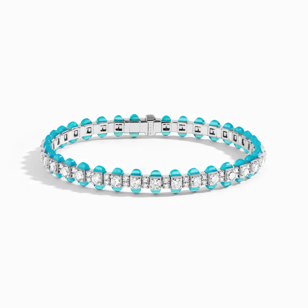 تألقي مع اسوارة تنس من مارلي، بتصميم فخم من الذهب الأبيض مع حجر فاخر. تضيف لمسة أناقة ساحرة وتجمع بين الفخامة والجاذبية مع خامات أصلية عيار 18 لتكملي إطلالتك بأسلوب راقٍ ومميز.