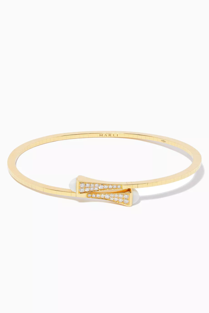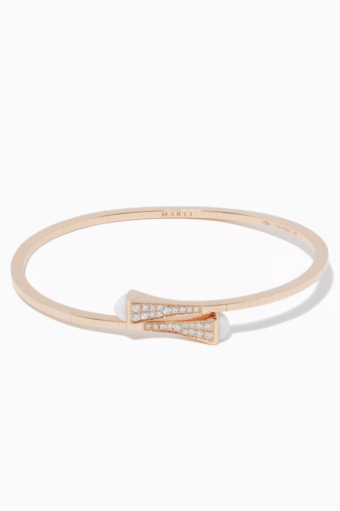 اكتشفي سوار كليو الفاخر من مارلي مع الماس وحجر، بتصميم أنيق يبرز جمال يدك بألوان الذهب والفضة والروز جولد. مثالي لإطلالة راقية ويجمع بين الفخامة والجاذبية مع خامات أصلية عيار 18.
